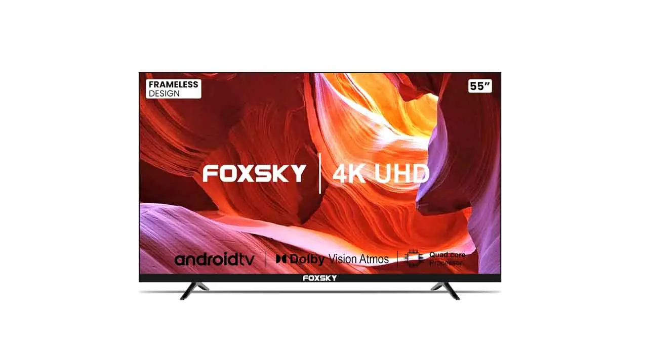 এটি Foxsky ব্র্যান্ডের স্মার্ট টিভি এবং এতে একাধিক কানেক্টিভিটি অপশন সহ বেজেল-লেস ডিজাইন দেখা যাবে। এই স্মার্ট টিভিতে অ্যান্ড্রয়েড টিভি সফটওয়্যার এবং ডলবি ভিশন অ্যাটমস সাপোর্ট করে। পারফরম্যান্সের জন্য এতে কোয়াড-কোর প্রসেসর ব্যবহার করা হয়েছে। ফ্লাট ডিসকাউন্টের পাশাপাশি এই Smart TV এর ওপর আলাদা করে ব্যাঙ্ক অফারের সুবিধা দেওয়া হচ্ছে।