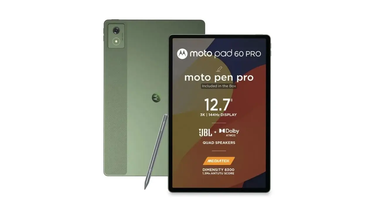 প্রত্যাশা মতো মোটোরোলা আজ ভারতে মিড-রেঞ্জ ট্যাবলেট Moto Pad 60 PRO লঞ্চ করল। এর দাম রাখা হয়েছে ৩০,০০০ টাকার কম। এতে পাওয়া যাবে 3K ডিসপ্লে, মিডিয়াটেক ডাইমেনসিটি ৮৩০০ প্রসেসর, ১০,২০০ এমএএইচ ব্যাটারি ও অ্যান্ড্রয়েড ১৪ অপারেটিং সিস্টেম। আর Moto Pad 60 PRO ট্যাবটি Moto Pen Pro স্টাইলাস সাপোর্ট সহ এসেছে। আসুন এর দাম ও সম্পূর্ণ স্পেসিফিকেশন জেনে নেওয়া যাক।