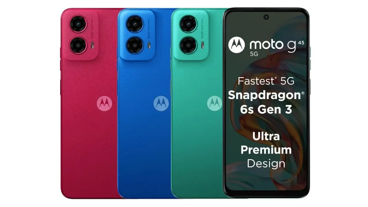 মোটোরোলা জি৪৫ ৫জি ফোনের সামনে দেখা যাবে ১৬০০ x ৭২০ পিক্সেল রেজোলিউশনের ৬.৫ ইঞ্চি HD+ ডিসপ্লে। এই ডিসপ্লে ১২০ হার্টজ রিফ্রেশ রেট এবং ৫০০ নিটস পিক ব্রাইটনেস সাপোর্ট করবে। এই ডিসপ্লের সুরক্ষার জন্য ব্যবহার করা হয়েছে গরিলা গ্লাস ৩। পারফরম্যান্সের জন্য এতে স্ন্যাপড্রাগন ৬এস জেন ৩ প্রসেসর দেওয়া হয়েছে।