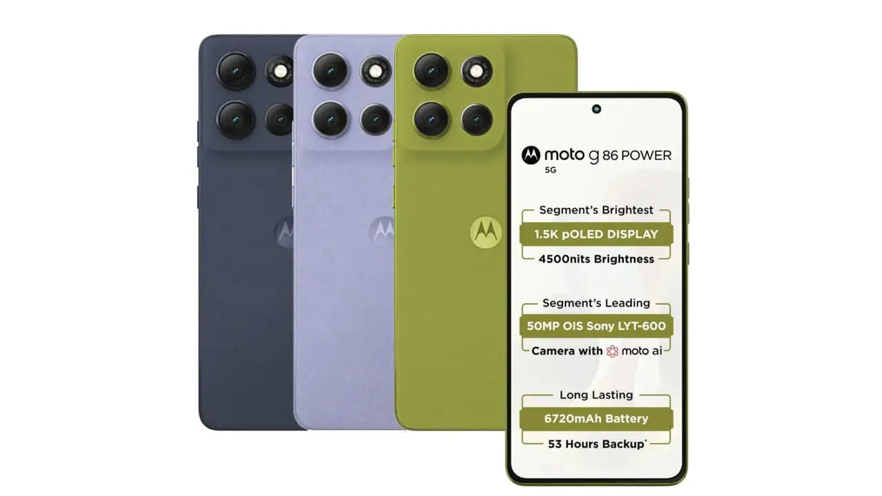 মোটোরোলা আজ ভারতে লঞ্চ করল তাদের নতুন স্মার্টফোন Moto G86 Power 5G। এর দাম রাখা হয়েছে ২০,০০০ টাকার কম। ডিভাইসটির সবচেয়ে বড় আকর্ষণ ৬৭২০ এমএএইচ ব্যাটারি ও মিডিয়াটেক ডাইমেনসিটি ৭৪০০ প্রসেসর। এর সাথে পাওয়া যাবে ৫০ মেগাপিক্সেলের Sony LYTIA-600 ক্যামেরা ও সুপার এইচডি অ্যামোলেড ডিসপ্লে। এটি চারটি কালার অপশনে ও একটি স্টোরেজ ভ্যারিয়েন্টে এসেছে। আসুন Moto G86 Power 5G এর দাম ও সম্পূর্ণ স্পেসিফিকেশন জেনে নেওয়া যাক।
