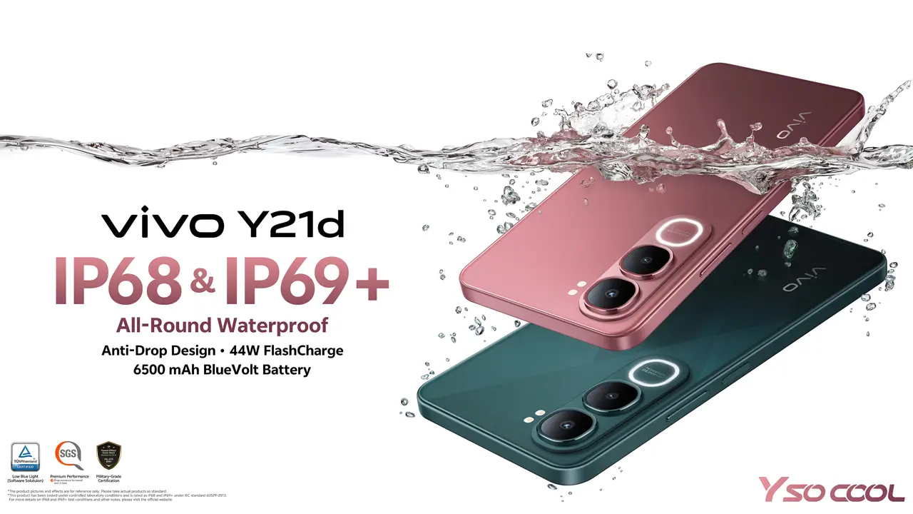 ভিভো ওয়াই২১ডি জেড গ্রিন ও কোরাল রেড কালার অপশনে এসেছে। ফোনটি আইপি৬৮ এবং আইপি৬৯ প্লাস রেটিং সহ এসেছে। এতে আছে ৬.৬৮ ইঞ্চি এলসিডি ডিসপ্লে, যার রিফ্রেশ রেট ৯০ হার্টজ এবং সর্বোচ্চ ব্রাইটনেস ১০০০ নিটস।