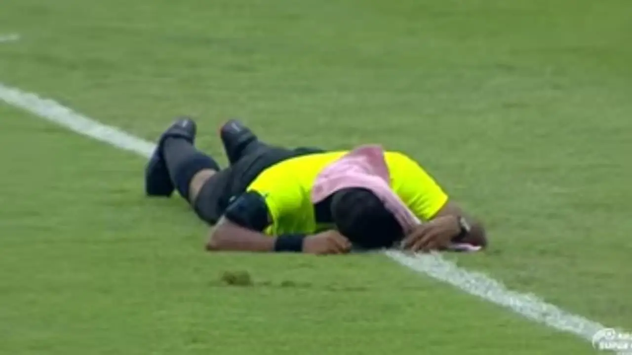 আসলে ম্যাচের ৩৫ মিনিটে হঠাৎ করেই মাঠের এক প্রান্তে থাকা সহকারী রেফারিকে মাটিতে শুয়ে পড়তে দেখা যায়। এরপর তিনি তোয়ালে দিয়ে মুখ ঢেকে নেন। দর্শক থেকে খেলোয়াড় এই ঘটনার পর প্রথমে সকলেই হতবাক হয়ে পড়েন। পরে জানা যায়, স্টেডিয়ামে থাকা মৌমাছির বাসা থেকে হঠাৎ এক ঝাঁক মৌমাছি মাঠের দিকে উড়ে আসছিল। তাদের আক্রমণ থেকে বাঁচতেই রেফারি এমন প্রতিক্রিয়া দেখান।