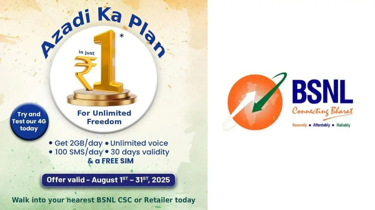 স্বাধীনতা দিবস উপলক্ষে ভারত সঞ্চার নিগম লিমিটেড বা BSNL তাদের গ্রাহকদের জন্য স্পেশাল প্ল্যান লঞ্চ করল। মাত্র ১ টাকা মূল্যের এই প্ল্যান রিচার্জ করলে পুরো এক মাসের জন্য ইন্টারনেট, কল ও এসএমএস এর সুবিধা পাওয়া যাবে। ‘আজাদি কা প্ল্যান’ (BSNL Azadi Ka Plan) নামে এই বিশেষ অফার স্বাভাবিকভাবেই সোশ্যাল মিডিয়ায় চর্চার বিষয় হয়ে উঠেছে। আসুন এই অফার সম্পর্কে বিস্তারিত জেনে নেওয়া যাক।