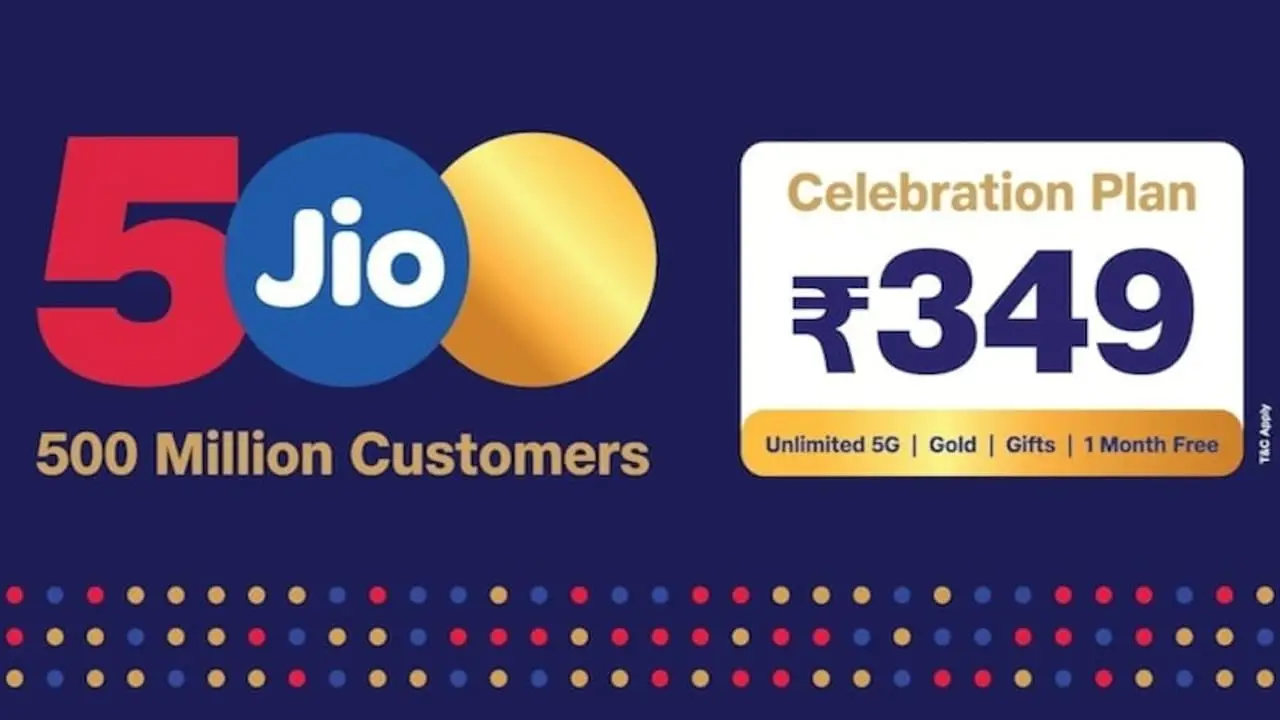 জিওর ৩৪৯ টাকার সেলিব্রশন প্যাকে গ্রাহকরা প্রতিদিন ২ জিবি ডেটা উপভোগ করতে পারবেন। এর সাথে আনলিমিটেড ৫জি ডেটার সুবিধাও পাওয়া যাবে। এছাড়া মিলবে ২% অতিরিক্ত ডিজিটাল গোল্ড (জিও ফাইন্যান্সের জিও গোল্ড)।