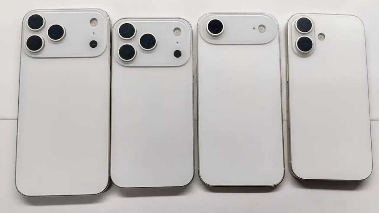 iPhone 17 সিরিজে থাকবে মোট চারটি ফোন- আইফোন ১৭, আইফোন ১৭ এয়ার, আইফোন ১৭ প্রো এবং আইফোন ১৭ প্রো ম্যাক্স। ফাঁস হওয়া ছবিতে দেখা গেছে, কালো ডামি ইউনিটে বাম থেকে ডানে রয়েছে আইফোন ১৭, আইফোন ১৭ এয়ার, আইফোন ১৭ প্রো এবং আইফোন ১৭ প্রো ম্যাক্স মডেলগুলি। আর, সাদা ডামি ইউনিটগুলো সাজানো হয়েছে উল্টোভাবে – বাম থেকে ডানে আইফোন ১৭ প্রো ম্যাক্স, আইফোন ১৭ প্রো, আইফোন ১৭ এয়ার এবং আইফোন ১৭।